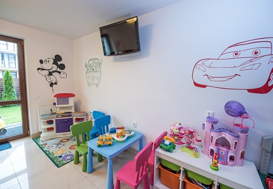Łóżeczka turystyczne z pościelą i dodatkowym materacykiem, wanienki do kąpieli, nocniki oraz foteliki do karmienia w cenie pokoju.